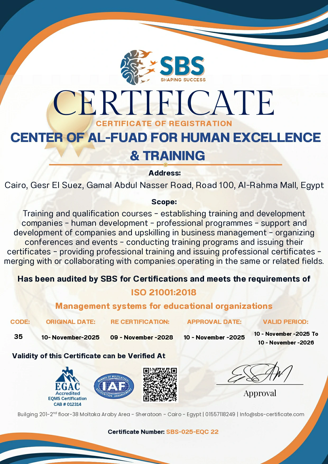 - Accredited certificates issued in Arabic and English